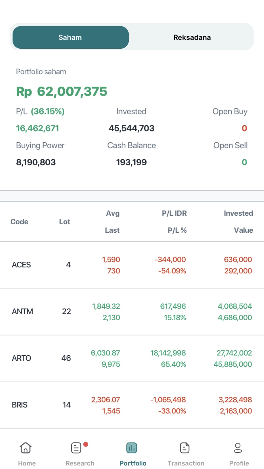 Dengan kondisi portfolio yang sepertinya seimbang antara hijau dan merah.