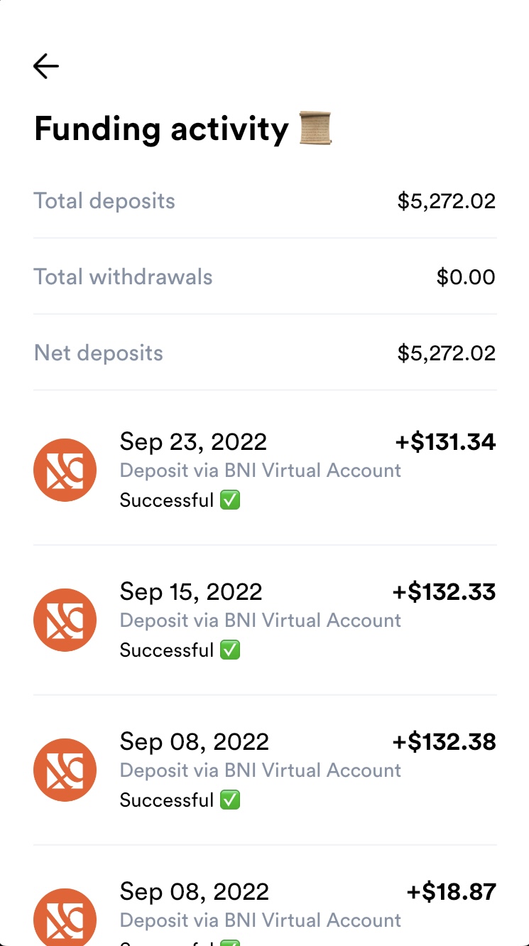 Total yang aku investasikan (deposit) 5200 atau dalam rupiahnya sekitar 78 Juta.