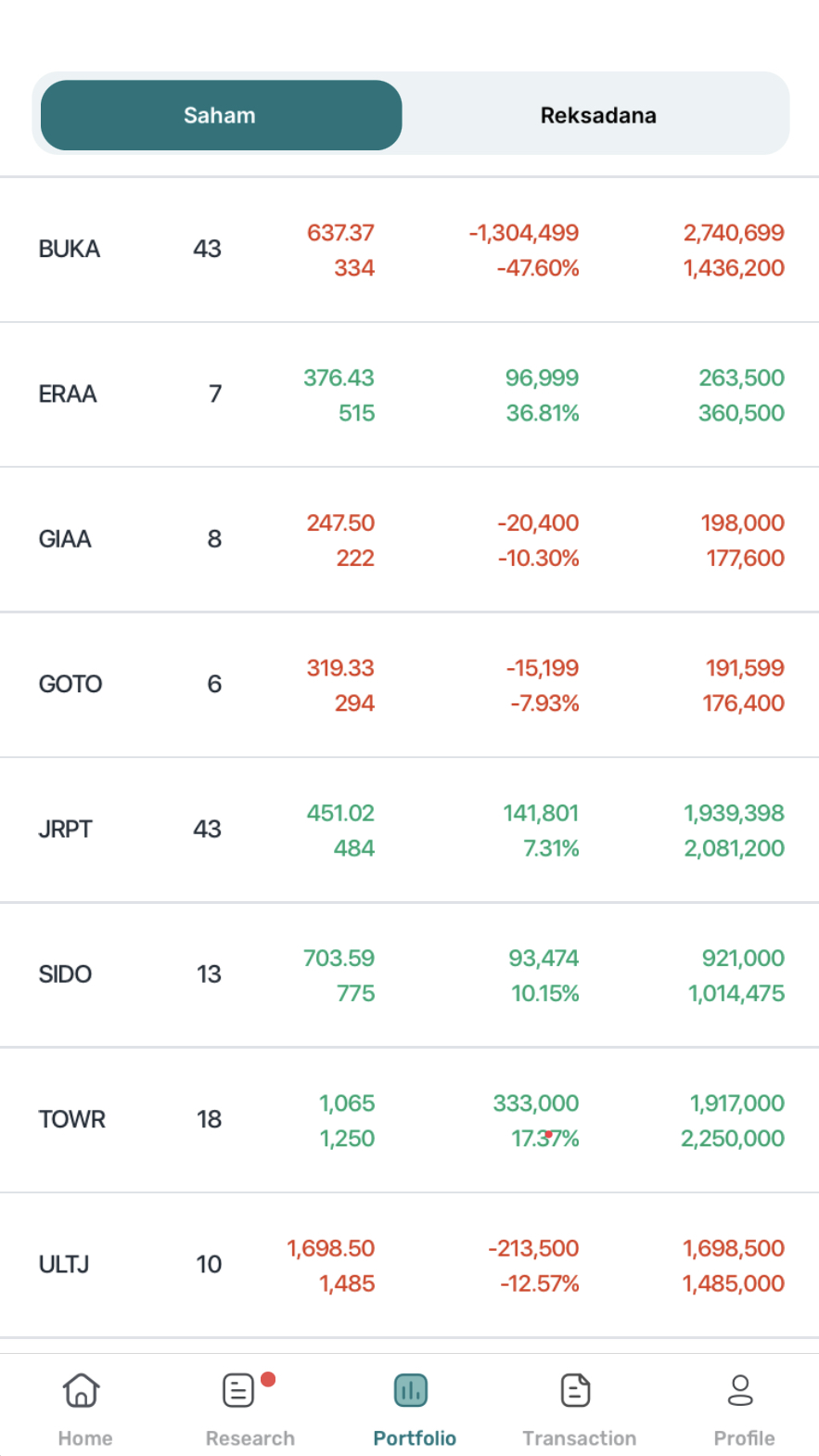 Dengan kondisi portfolio yang sepertinya seimbang antara hijau dan merah.