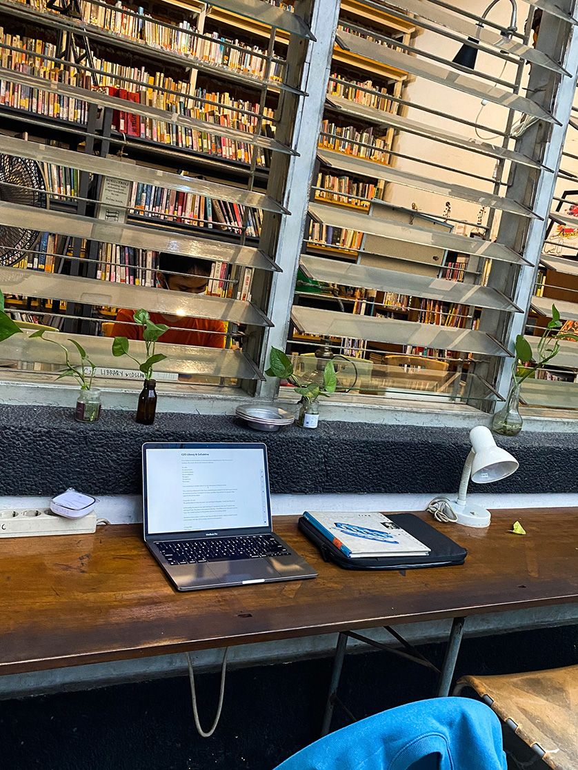 This is basically a library which also has a coworking space upstairs if we want to get access to the internet connection. It located in Dr Cipto, Surabaya. You can find it on google maps easily for the address detail.